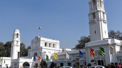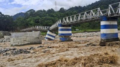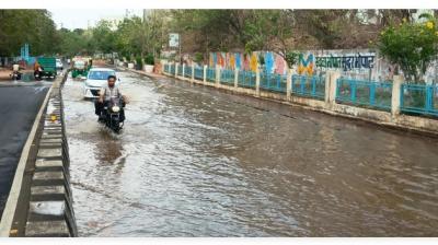 भोपाल में लोक भवन के सामने सड़क धंसी, पानी बहने...