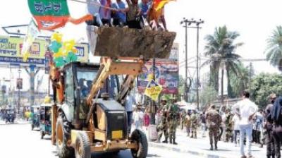बुलडोजर के साथ नामांकन भरने पहुंचे भाजपा उम्मीदवार, वजह जानकर...