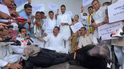 भोपाल : मध्यप्रदेश विधानसभा के मानसून सत्र के दूसरे दिन मंगलवार को विपक्ष ने सरकार सरकार के खिलाफ प्रतिकात्मक प्रदर्शन किया। नेता प्रतिपक्ष उमंग सिंघार के नेतृत्व में कांग्रेस विधायकों...