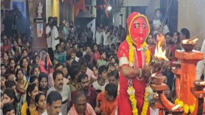 खरगोन की 407 साल पुरानी परंपरा में मां महाकाली ने किया भव्य प्रवेश, सिंह पर सवार और तलवार थामे श्रद्धालुओं को मंत्रमुग्ध किया