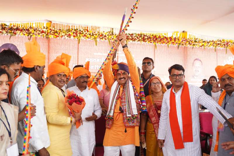 कार्यक्रम स्थल पर ढोल की थाप पर आदिवासी नृत्य प्रस्तुत कर नृत्य दलों द्वारा पुष्प वर्षा के बीच मुख्यमंत्री डॉ. यादव का भव्य एवं आत्मीय स्वागत किया गया। मंत्री श्री नागर सिंह चौहान एवं सांसद श्रीमती अनिता नागर सिंह चौहान ने मुख्यमंत्री डॉ. यादव को पुष्पगुच्छ, मुख्यमंत्री डॉ. यादव की हस्तनिर्मित तस्वीर, आदिवासी संस्कृति को दर्शाती पेंटिंग, धनुष-बाण एवं जैकेट भेंट कर स्वागत किया। जिला पंचायत अध्यक्ष श्रीमती हजारी बाई खरात, जनपद अध्यक्ष श्रीमती सुनीता इंदर सिंह चौहान, श्री संतोष मकू परवाल सहित 1369 नवविवाहित जोड़े एवं उनके परिवारजन एवं बड़ी संख्या में आमजन उपस्थित थे।