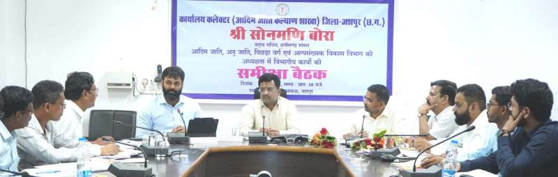 रायपुर : आदिम जाति कल्याण विभाग के प्रमुख सचिव सोनमणि बोरा ने सोमवार को जशपुर जिला के कलेक्टोरेट सभाकक्ष में विभाग की समीक्षा बैठक लेकर विशेष पिछड़ी जनजाति पहाड़ी कोरवा परिवारों को पीएम जनमन योजना का लाभ देने के निर्देश दिए हैं। उन्होंने पक्के मकान, मोबाइल मेडिकल यूनिट, आश्रम छात्रावास के निर्माण कार्य, पानी, बिजली, स्वास्थ्य, शिक्षा, आजीविका मूलक गतिविधियों सहित अन्य योजनाओं की जानकारी ली। इस अवसर पर कलेक्टर रोहित व्यास, जिला पंचायत सीईओ अभिषेक कुमार, उप सचिव बी. के. राजपूत सहित आदिवासी विकास विभाग के अधिकारीगण उपस्थित थे।