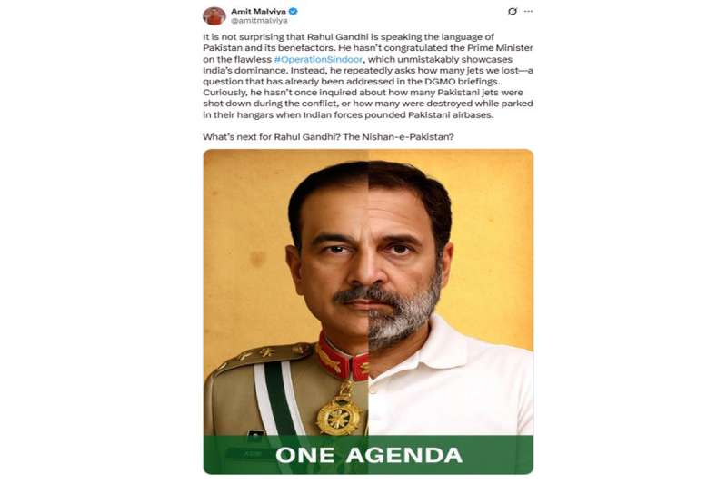 मालवीय ने कहा कि राहुल ने हालांकि एक बार भी यह जानने की कोशिश नहीं की कि इस संघर्ष के दौरान कितने पाकिस्तानी जेट मार गिराए गए या नष्ट किए गए। राहुल गांधी को अब क्या मिलेगा? निशान-ए-पाकिस्तान?