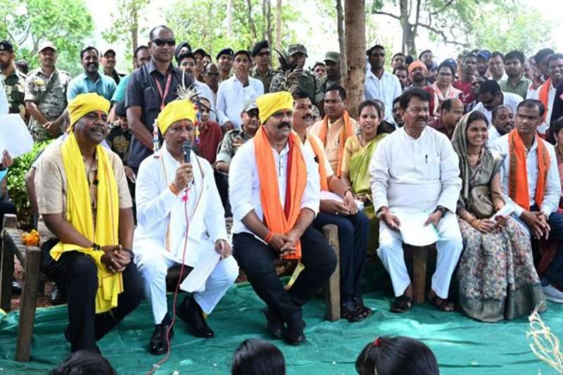 रायपुर: सुशासन तिहार के तहत छत्तीसगढ़ के मुख्यमंत्री विष्णु देव साय ने आज नारायणपुर जिले के ओरछा विकासखंड के ग्राम बासिंग स्थित बीएसएफ कैंप परिसर में चौपाल लगाकर जनसंवाद किया। नीम के पेड़ की छांव में खाट पर बैठकर मुख्यमंत्री ने न सिर्फ ग्रामीणों की समस्याएं सुनीं, बल्कि मौके पर ही एक करोड़ रुपए से अधिक की सौगातों की घोषणा कर लोगों का दिल जीत लिया। चौपाल में मुख्यमंत्री साय के साथ उप मुख्यमंत्री विजय शर्मा, वन मंत्री केदार कश्यप, मुख्य सचिव अमिताभ जैन और मुख्यमंत्री के प्रमुख सचिव सुबोध सिंह भी मौजूद थे। मुख्यमंत्री साय ने कहा कि 8 अप्रैल से वे स्वयं पूरे प्रदेश में सुशासन तिहार के तहत जनसंवाद और योजनाओं के क्रियान्वयन की वास्तविक स्थिति जानने के लिए क्षेत्रों में पहुंच रहे हैं। चौपाल के दौरान ग्रामीणों ने पारंपरिक पगड़ी और कलगी पहनाकर मुख्यमंत्री का स्वागत किया।