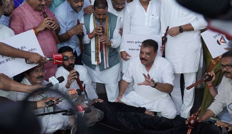 भोपाल : मध्यप्रदेश विधानसभा के मानसून सत्र के दूसरे दिन मंगलवार को विपक्ष ने सरकार सरकार के खिलाफ प्रतिकात्मक प्रदर्शन किया। नेता प्रतिपक्ष उमंग सिंघार के नेतृत्व में कांग्रेस विधायकों ने ‘भैंस के आगे बीन बजाने’ जैसा प्रतीकात्मक विरोध कर भाजपा सरकार पर तीखा हमला बोला। कांग्रेस का कहना हे कि यह विरोध प्रदर्शन सरकार की "संवेदनहीनता" और जनहित के मुद्दों पर "मौन रवैये" के खिलाफ किया गया। प्रदर्शन के दौरान भैंस की प्रतिकृति के साथ कांग्रेस विधायक विधानसभा परिसर पहुंचे और उन्होंने सरकार की नीतियों पर सवाल उठाए। वहीं, सदन में मुख्यमंत्री ने विपक्ष पर तंज कसते हुए कहा कि आज नागपंचमी पर भैंस लेकर आए। कभी गिरगिट लेकर आते हैं। आप चुनेहुए प्रतिनिध हैं। मय्रादा बनाकर रखना चाहिए।