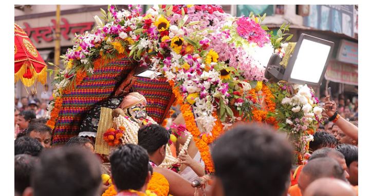 महाकाल की राजसी सवारी पर हेलीकॉप्टर से हुई पुष्पवर्षा