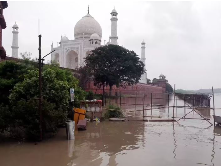 यमुना का जलस्तर बढ़ा: ताजमहल परिसर में टिकट विंडो से बाग तक बाढ़ का पानी भर गया