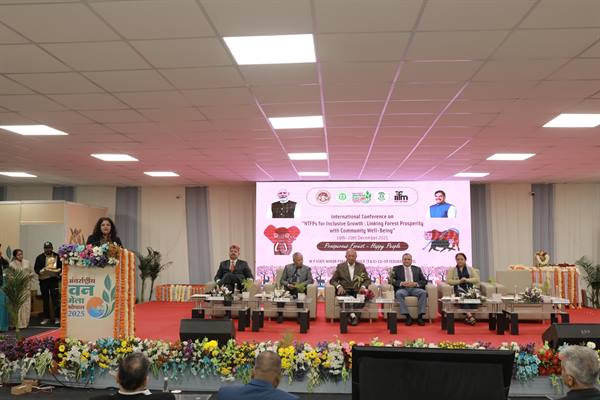 भोपाल : अंतर्राष्ट्रीय वन मेले में 11:00 बजे से दो दिवसीय कार्यशाला- अकाष्ठीय वनोपज से सामुदायिक विकास-"वनों की समृद्धि को सामुदायिक जनकल्याण से जोड़ना" विषय पर आधारित दो दिवसीय कार्यशाला का आयोजन व्ही. एन. अंबाड़े, प्रधान मुख्य वन संरक्षक एवं वन बल प्रमुख के मुख्य आतिथ्य में हुआ। विशिष्ट अतिथि के रूप में व्ही. आर. खरे, सेवानिवृत्त वन बल प्रमुख भारतीय वानिकी अनुसंधान एवं शिक्षा परिषद देहरादून की महानिदेशक, कंचन देवी, सेवानिवृत्त वन बल प्रमुख रमेश के. दवे, डॉ. अभय कुमार पाटिल तथा म.प्र. राज्य लघु वनोपज संघ की प्रबंध संचालक डॉ. समीता राजोरा उपस्थित रहे। कार्यशाला में वनों से विनाश विहीन विदोहन के लिये नई तकनीकों की जानकारी ग्रामीण संग्राहकों तक पहुंचाने के लिये वन परिक्षेत्रवार कार्यक्रम चलाना चाहिए जिससे वनों का विस्तार हो एवं वनों से प्राप्त होने वाली वनोपजों का संरक्षण एवं पैदावार बढ़ाई जा सके, के संबंध में विस्तृत चर्चा की गई ।