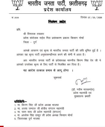 भाजपा नेता को पार्टी ने किया निष्कासित