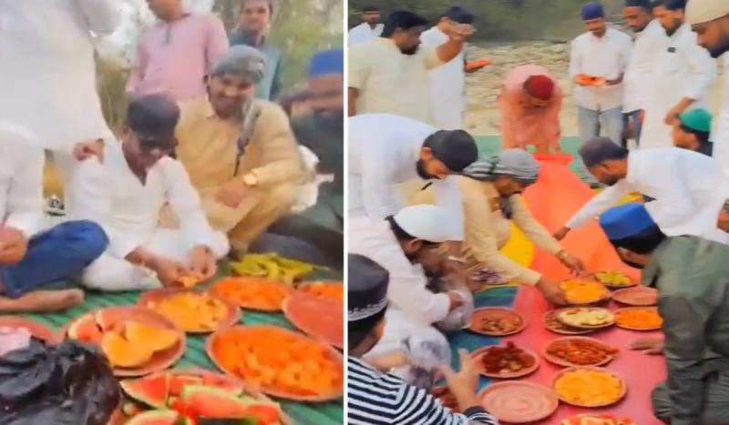 गंगा के बाद अब मंदिर के पास उड़ाई इफ्तार की दावत, वायरल वीडियो से मचा हड़कंप