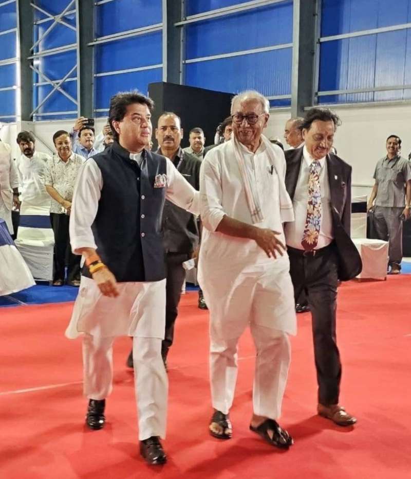 मध्य प्रदेश के दो दिग्गज नेता और राज घराने के सदस्य केंद्रीय मंत्री ज्योतिरादित्य सिंधिया और पूर्व सीएम दिग्विजय सिंह के बीच जुबानी जंग कई बार देखी जाती है. इसके उलट रक्षाबंधन से पहले भोपाल में आयोजित निजी कार्यक्रम में दोनों नेताओं का मिलन और आदर भाव चर्चाओं में है. जिस तरह कार्यक्रम के दौरान ज्योतिरादित्य सिंधिया मंच से उतर कर सामने बैठे दिग्विजय सिंह और उनके परिवार से आकर मिले और उन्हें साथ मंच तक ले गए हर कोई इस वाकये के अपने मायने निकाल रहा है.