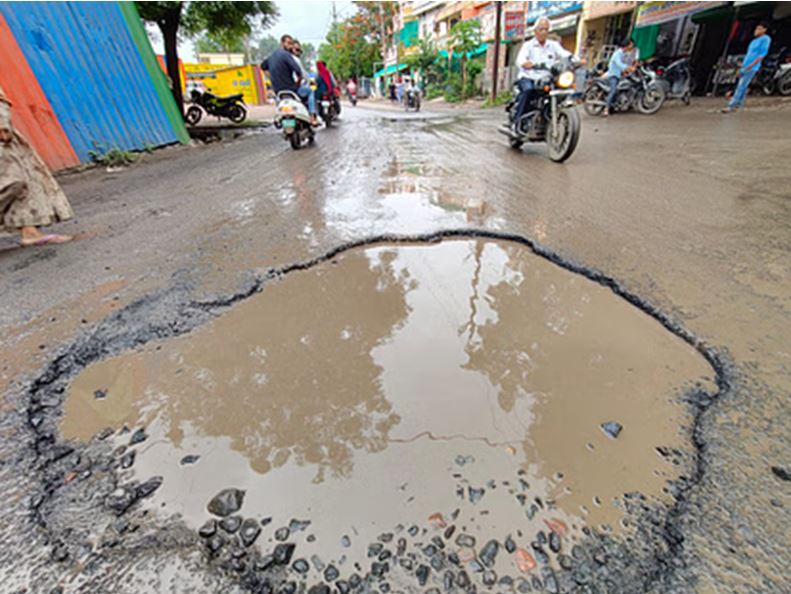 इंदौर में बारिश का कहर: सड़कों की चूरी बह गई, हर तरफ गड्ढों का जाल