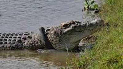 तालाब से स्कूल तक पहुंचा 10 फिट लंबा मगरमच्छ