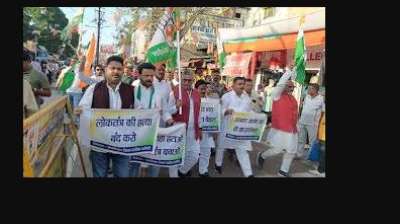कांग्रेसियों ने जुलूस निकालकर किया सरकार के खिलाफ प्रदर्शन