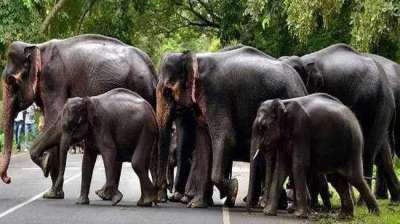 कटघोरा वन मंडल में हाथी का झुंड देख ग्रामीणों में दहशत