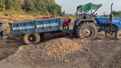अवैध रेत उत्खनन पर सख्त कार्रवाई 5 ट्रैक्टर ट्रॉलियों को मौके पर किया गया जब्त