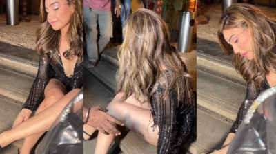 हाई हील्स में बैलेंस बिगड़ा, सीढ़ियों से गिरीं कंगना शर्मा, वीडियो हुआ वायरल